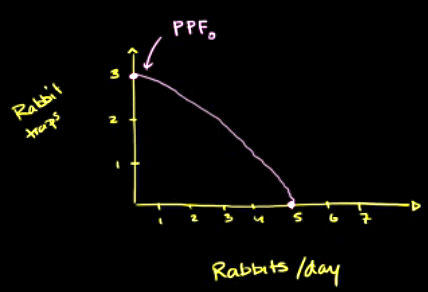 如果这个猎人第一天抓了4只兔子,做了一个陷阱,那么从第二天开始陷阱就可以帮助猎人多抓一只兔子($PPF_1$):
